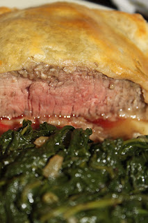 I'm on a roll! The success of Monday's cook-a-thon got me very excited for Tuesday night's attempts. Especially because I was flying solo on these: I had no real recipes. First up, Beef Wellington. I look at countless recipes, each one completely different than the other. so, I decided to just wing it. Traditionally, you use a fillet for these, but I didn't want to spend the money. So, I used really nice cuts of sirloin, and it turned out wonderful. I served them with sauteed spinach. Divine!